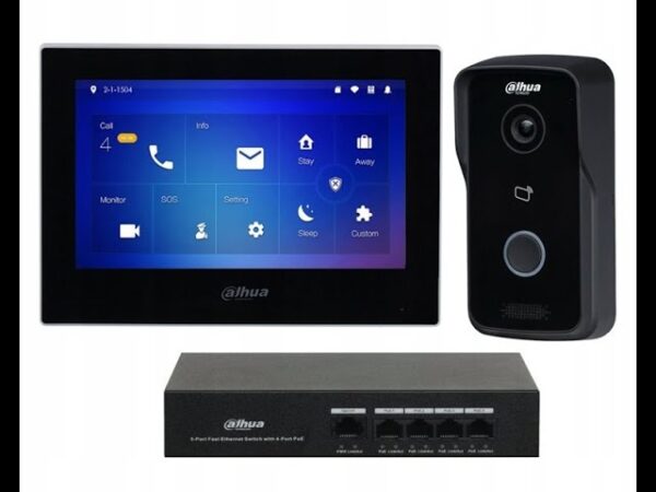 Dahua 1Mp Card Swiping Touch 6-ch IP65 Video Intercom KIT DHI-VTO2111D-P-S2 DHI-VTH2621G-WP DH-3006-4ET-36