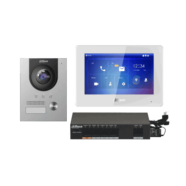 Dahua 2Mp Card Swiping Touch 6-ch IP65 Video Intercom KIT DHI-VTO3311Q-WP DHI-VTH8621KMS-WP DH-PFS3006-4ET-36